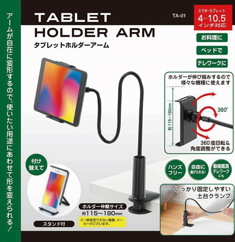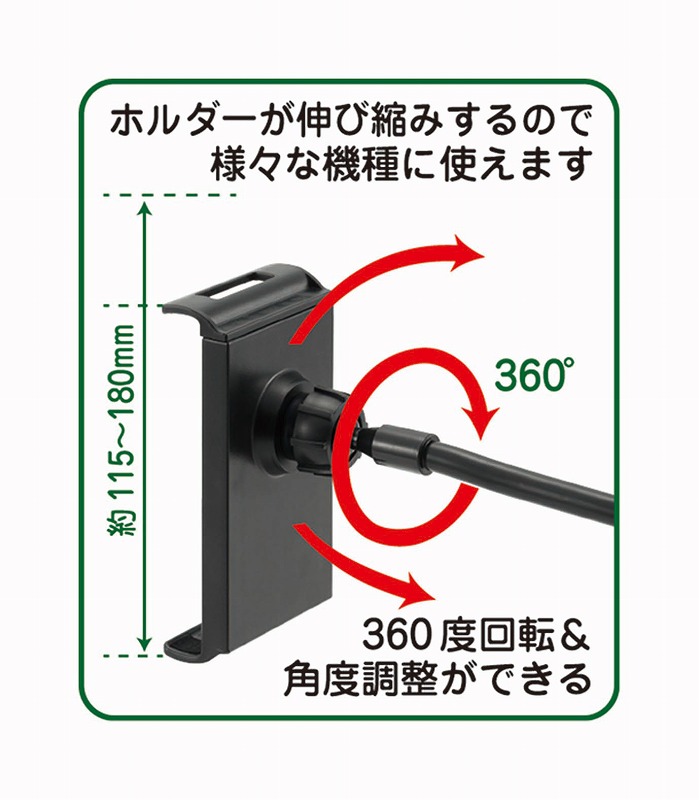 対応タブレット・スマートフォンサイズ/幅115~180mm、耐荷重/500g