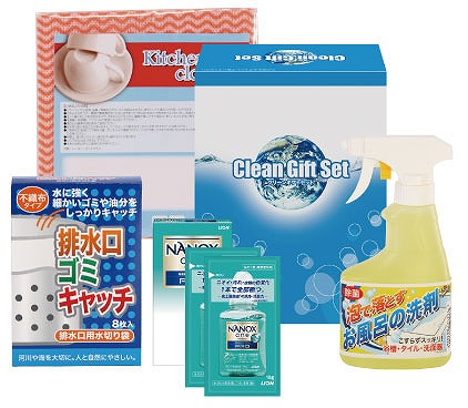 NANOX2P×1・お風呂の洗剤スプレー(300ml)×1・排水口ゴミキャッチ(8P)×1・キッチンクロス1P×1