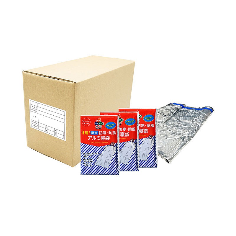 セット内容:4層!静音 防寒・防風アルミ寝袋×10、4層!静音アルミ保存袋、管理シト×各1