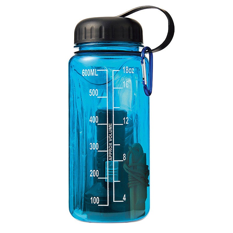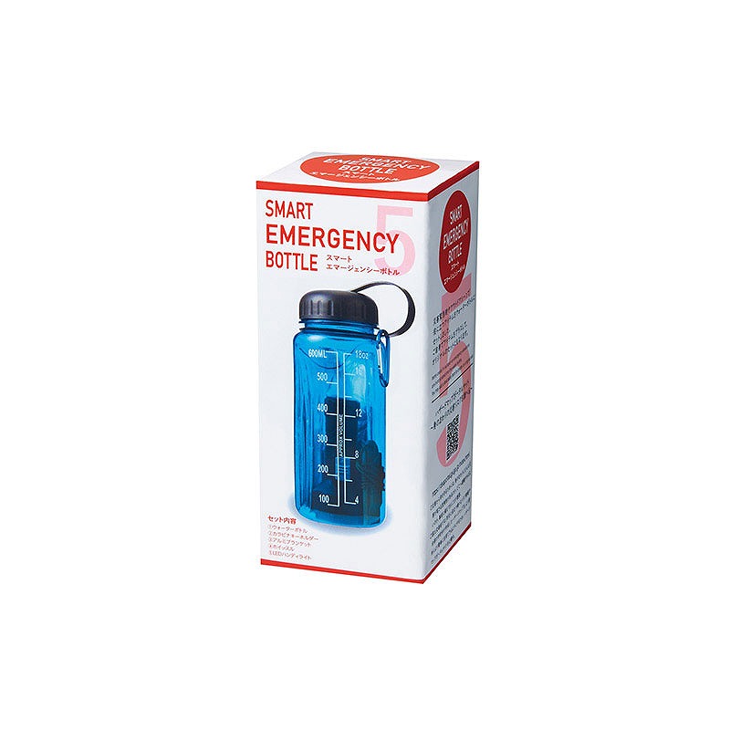 災害時の防災セットを持ち運び便利なボトルに収納。 スマートエマージェンシーボトル(LEDタイプ)は、600mlボトルに収納された災害時の防災セット。内部にはLED電球のハンディライト、薄型ホイッスル、アルミブランケットが含まれ、持ち出しやすく保管にも便利。リュックやズボンに付けられるカラビナキーホルダーも付属。家庭、職場、車に備えておけば、安心です。