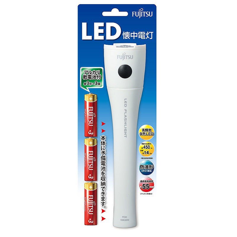 LED懐中電灯(乾電池付き)HGN3310FX1-W(B) ※個人宅配送不可