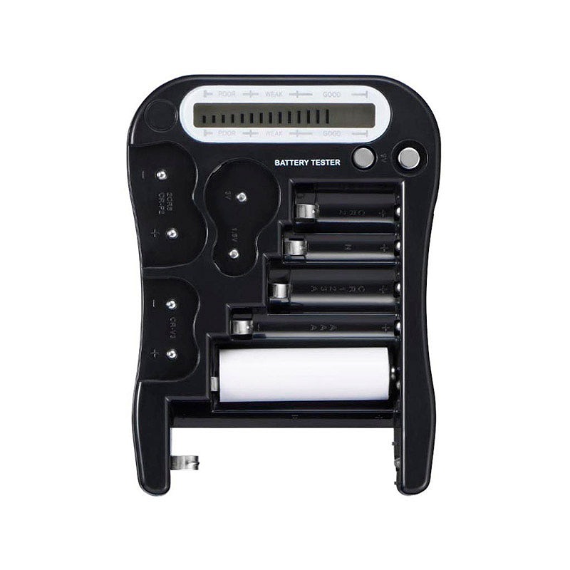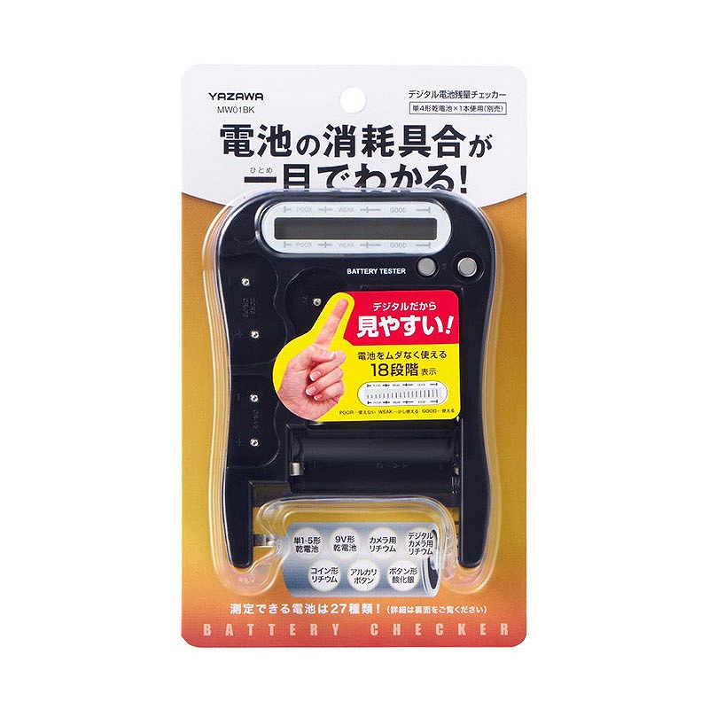 電源:単4形乾電池×1本(別売) 、測定可能電池・1.5V単1~単5形アルカリ電池・1.5Vアルカリボタン電池/ボタン形酸化銀電池・3Vコイン形リチウム電池・3V、6Vカメラ用リチウム電池・9V形乾電池