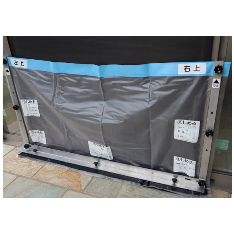 サイドバ:ステンレス・正面金具:ステンレス・サイド金具セット:ステンレス・止水ゴム(エプトシラ):エチレンプロピレンゴム(EPDM) t10mm・固定ネジ(サイド):ステンレス、ポリプロピレン(PP)・固定ネジ(下部):スチル(三価クロメト)、ポリブチレンテレフタレト(PBT)・粘着テプ:アクリルフォム・粘土:未加硫型ブチル系シリング材・バグリップ:ポリプロピレン
