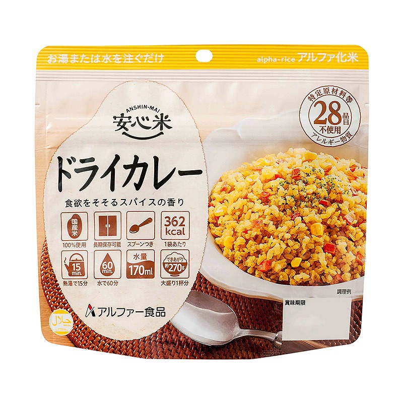 ●具入り米:うるち米(国産)、乾燥具材(スイトコン、乾燥にんじん、乾燥たまねぎ、デキストリン)/酸化防止剤(ビタミンC)●カレ調味粉末:食塩、カレ粉、オニオンエキスパウダ、コンスタチ、砂糖、タメリックパウダ、クミンパウダ、ココアパウダ、混合香辛料、酵母エキス、ブラックペッパ、とうがらし/調味料(アミノ酸等)、香料、微粒二酸化ケイ素