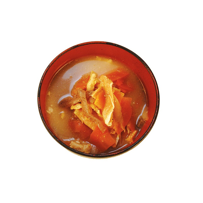 野菜(人参(中国産)、里芋、ごぼう)、こんにゃく、豚肉、みそ(大豆を含む)、油揚げ、かつお節エキス/水酸化カルシウム(こんにゃく用凝固剤)