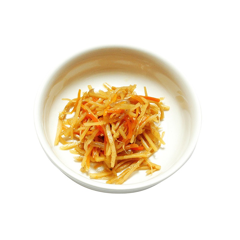 野菜(ごぼう(国産)、人参)、醤油(小麦、大豆を含む)、こんにゃく、砂糖、還元水飴、植物油脂、かつおだし、ごま、唐辛子/調味料(アミノ酸等)、水酸化カルシウム(こんにゃく用凝固剤)、酸化防止剤(ビタミンC)