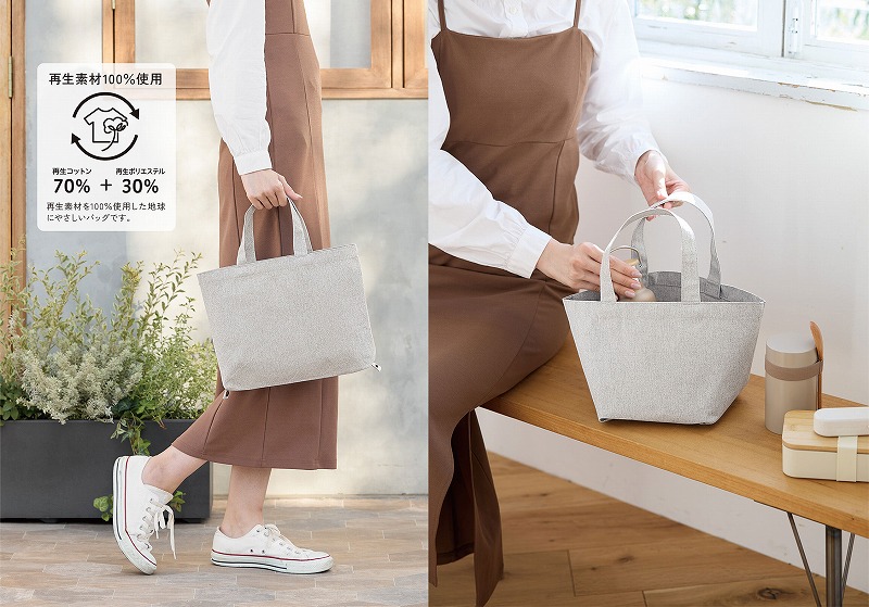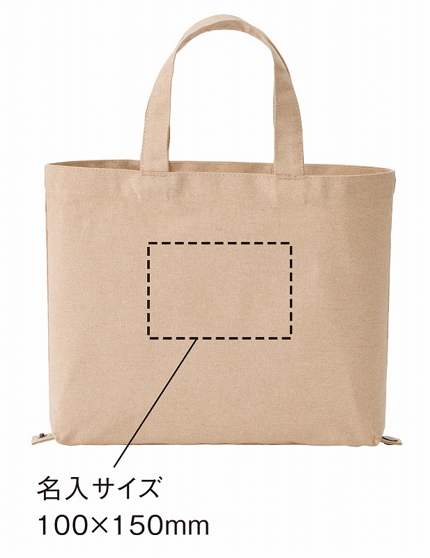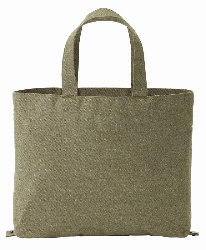 底面のボタンで形状が変えられる、再生素材100%の2wayキャンバストート。