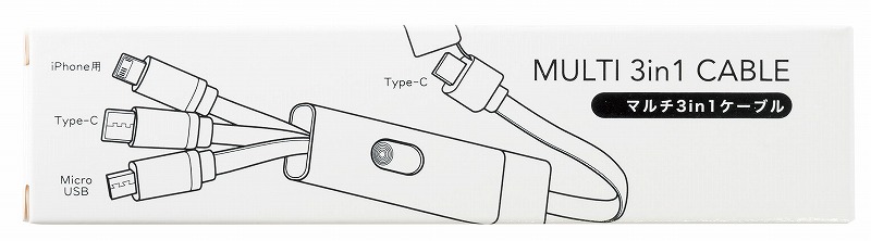 ポートの形状が異なる複数の端末に対応できる充電用ケーブル。