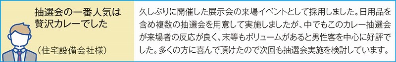 <キット内容> [特賞]兵庫 「三田屋総本家」 三田屋仕立てカレー 8食セット・・・1本 [1等]佐賀「大正屋 椎葉山荘」監修 佐賀牛&ありた鶏カレー 3食セット・・・1本 [2等]福岡 博多The伽哩 2食セット・・・2本 [3等]名古屋本家赤からカレー(中辛)・・・6本 [4等]Hachi たっぷりビーフカレー (中辛)・・・40本 <付属> 抽選くじ×50、抽選箱×1、くじ明細書×1、告知用A4カード×1 ※賞品の内容・仕様は画像と異なる場合があります。あらかじめご了承ください。