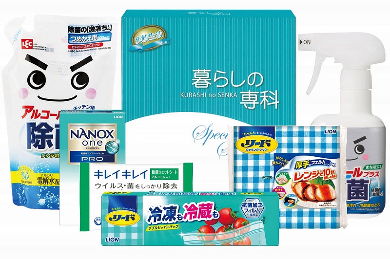 <セット内容> ・レック 除菌の激落ちくん320ml×1 ・レック 除菌の激落ちくん300ml(詰め替え用)×1 ・ライオン NANOX one PRO(10g×2袋)×1 ・ライオン リード冷凍も冷蔵も新鮮保存バッグS3枚×1 ・ライオン リードクッキングペーパー小4枚×1 ・ライオン キレイキレイ除菌ウェットシート1枚(アルコールタイプ)×1
