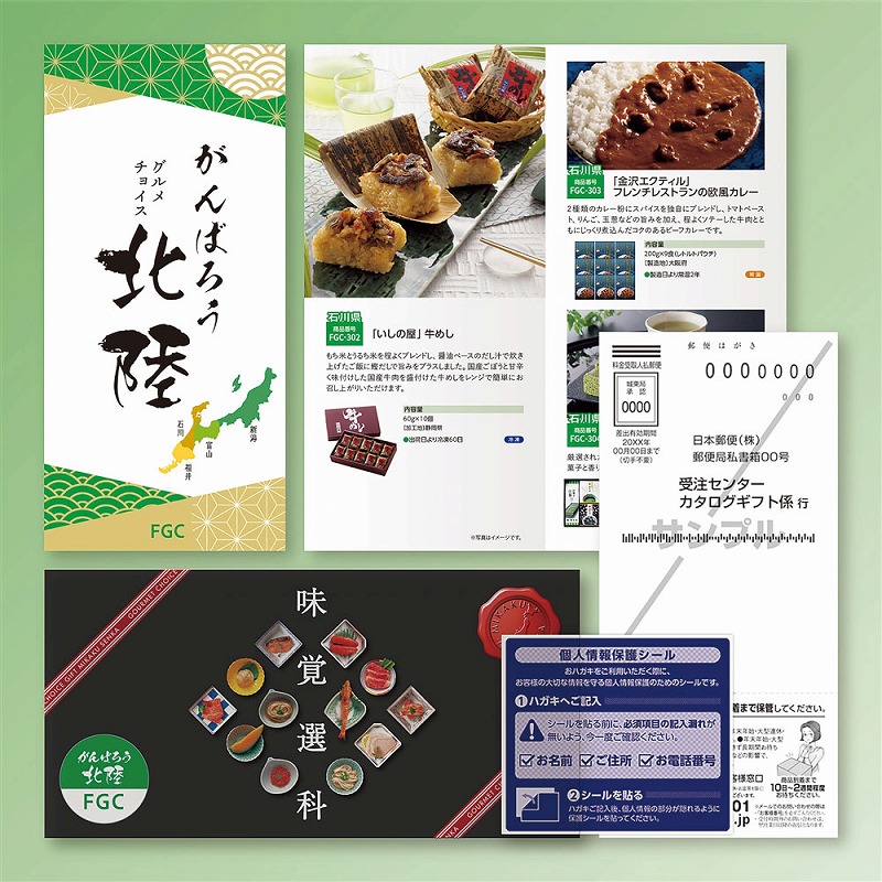 <セット内容> ギフトメニュー(12アイテム) 注文返信用ハガキ(料金受取人払) 個人情報保護シール ※申込み金額合計21000円(カタログ掲載価格)未満は送料別途1000円になります。 ※金額にはシステム料1000円が含まれています。 ※カタログ改定に伴い、商品点数や内容が一部変更となる場合がございますが、ご了承ください。 ※カタログ誌面はイメージになります。掲載されている商品の内容は異なる場合があります。 ※ご注文期限はハガキ発行月を含む6ヶ月後の末日となります。