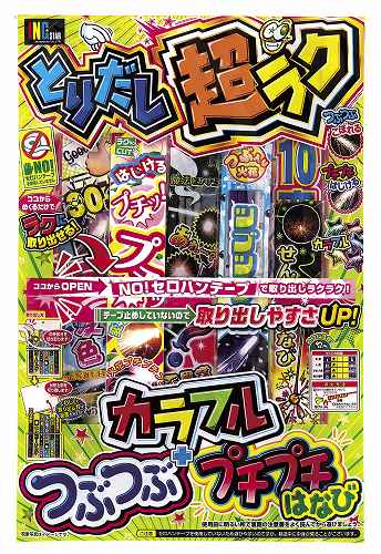 100円以下の花火セットからわくわく花火大会プレゼント100人用まで販売促進イベントに合わせてご用意しております。季節商材ですので完売の場合は、類似同等商品をご案内しております。