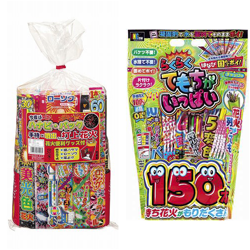 100円以下の花火セットからわくわく花火大会プレゼント100人用まで販売促進イベントに合わせてご用意しております。季節商材ですので完売の場合は、類似同等商品をご案内しております。