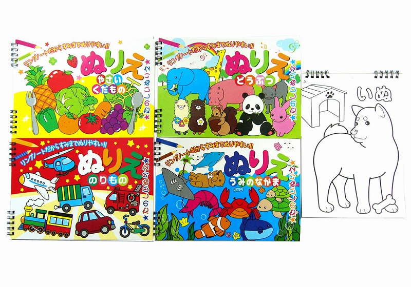16枚のぬりえです。リングたいぷでとじてますので、開いたときに浮きにくいという特徴がございます