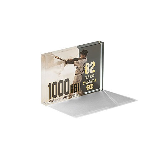 フルカラーで自由にデザインができ、そのまま立てかけて飾れるアクリルブロック。アーティストやキャラクターをデザインすればファングッズとして、会社のロゴを入れれば周年記念品としてもお使いいただけます。