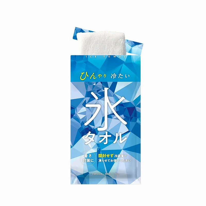 冷凍庫で冷やしてお使い頂く氷タオルです。開封せず、冷凍庫へ入れて凍らせることでひんやり冷たいタオルとしてお使い頂くことが出来ます。