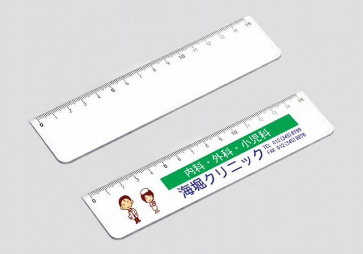 名入れしてPR効果抜群のホワイト15cm直定規です。インクジェットフルカラー印刷もシルク印刷も綺麗に入ります。