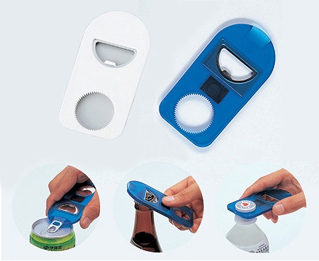 センヌキ、ペットボトルオープナー、プルトップオープナーの3機能付オープナー