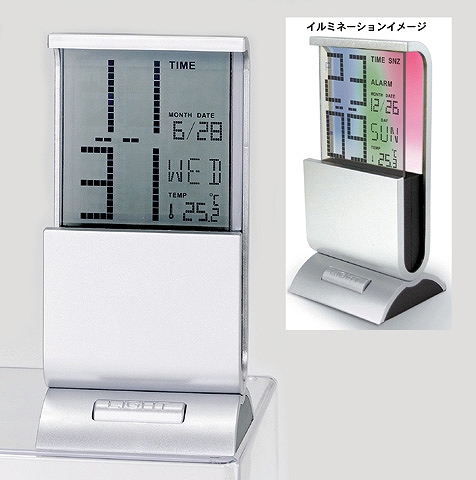 時計、カレンダー、温度計、アラーム、カウントダウン、イルミネーション