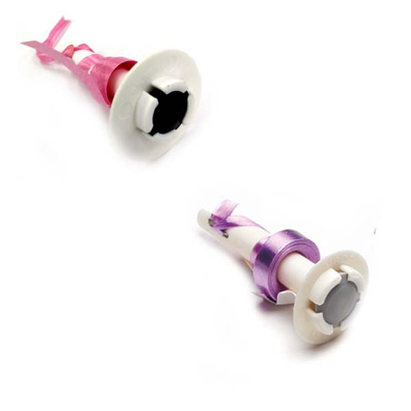 白、赤、黄、青、緑、橙、桃、紫、薄青のアソート。各風船にガスの注入の手間が簡単になるリボンバルブをセットしています。