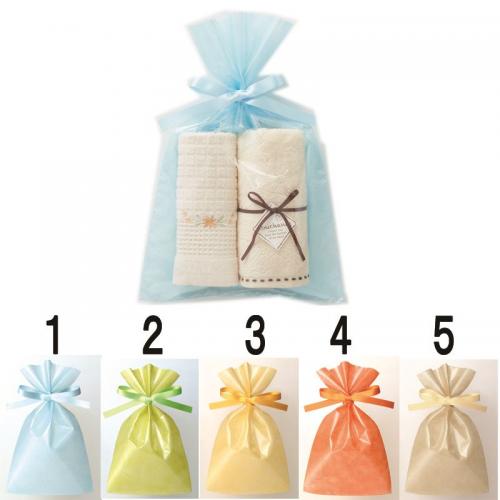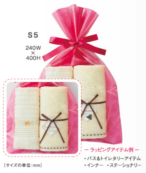 本体の不織布記事色と同系統のサテンリボンをお付けします。