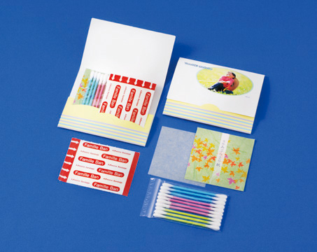 ・ファミールバンM 2P ・カラー綿棒10本 ・あぶらとり紙(茶)10枚
