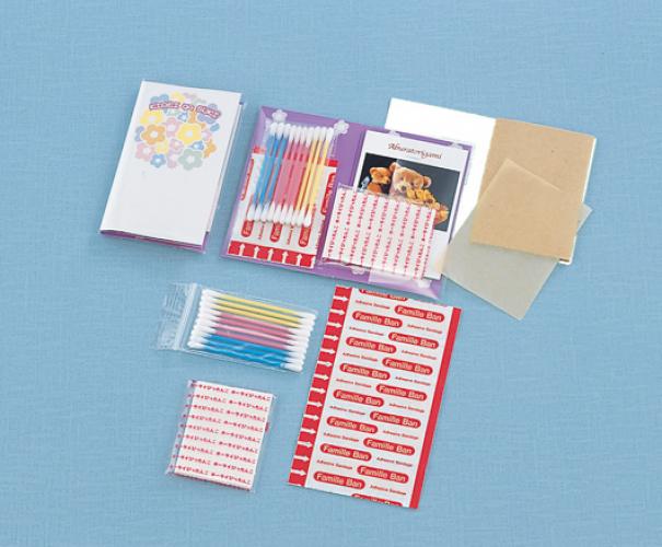 ・ファミールバンM 5P ・カラー綿棒10本 ・ホータイぴったん子1個 ・あぶらとり紙(茶)50枚