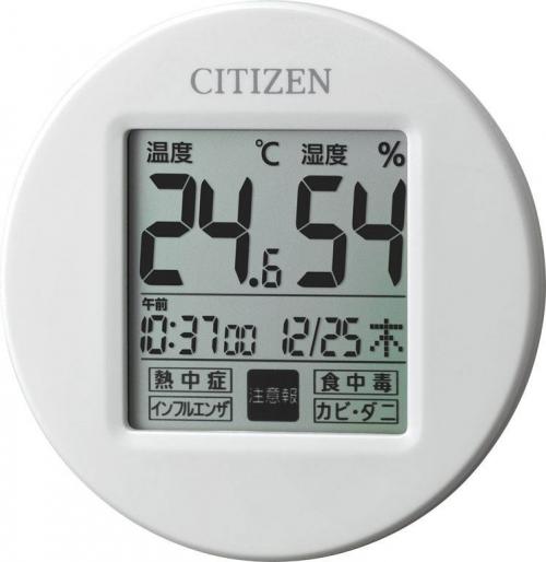 温度測定精度:±1℃/湿度測定精度:±3%/時計表示付:12時間表示/時計精度:月差±30秒以内/カレンダー表示付/