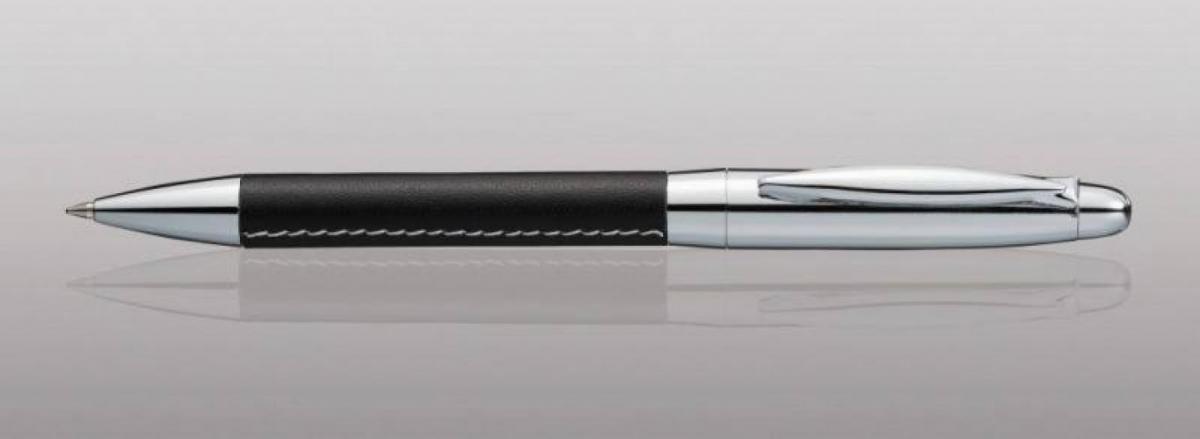 レザー風素材とメタルの洗練されたデザイン センスが光る美しいボールペンです