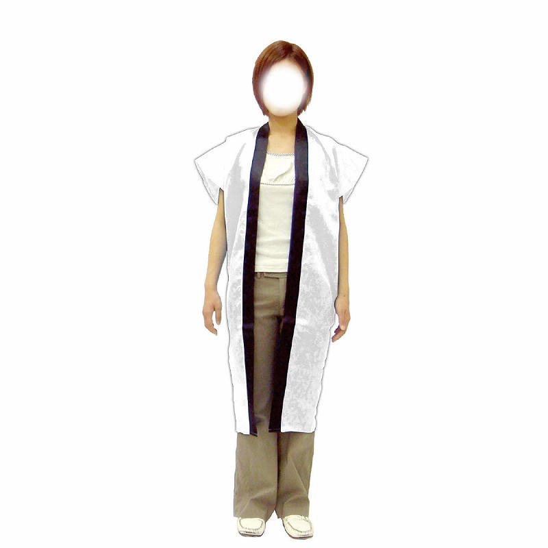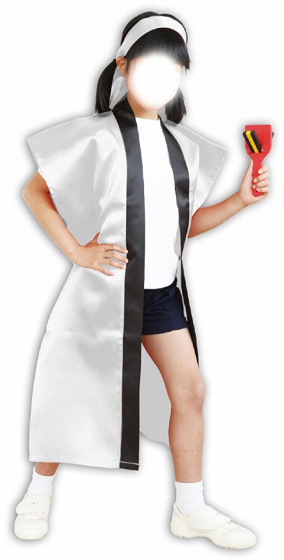 サテンロングハッピ白L(ハチマキ付) ※個人宅配送不可