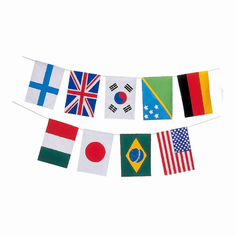 絵具などで着色して、万国旗や応援旗が作れます。棒やロープが通せるように加工してあります。