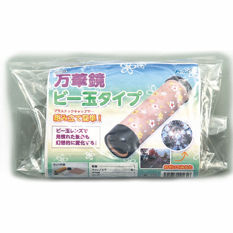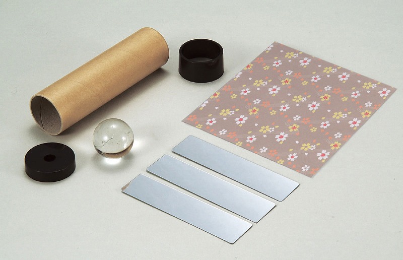 紙管(φ39×10mm)×1、上、下キャップ、トレー上、下×1、千代紙(140×125mm)×1、ミラー(31×113mm)×3、ビー玉(φ35mm)透明×1