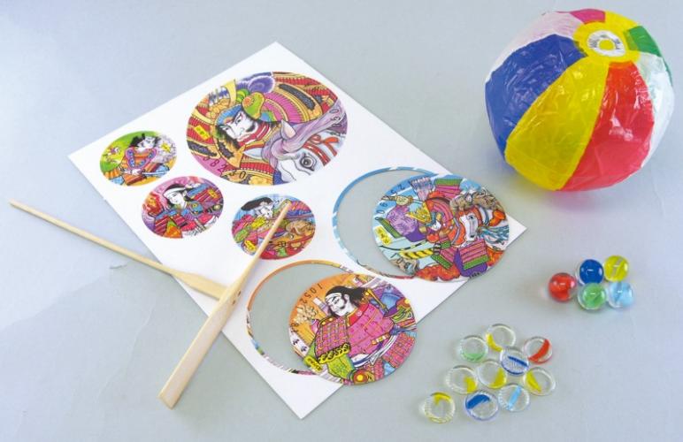 しゃぼん玉やコマ・竹トンボ・けん玉・メンコなど昭和を感じる懐かしのおもちゃです。
