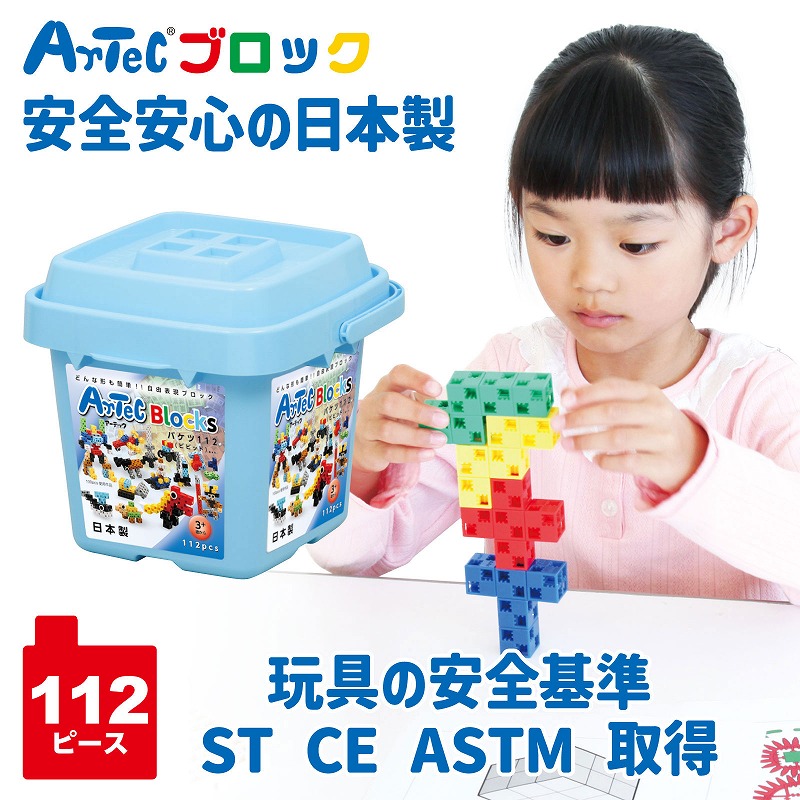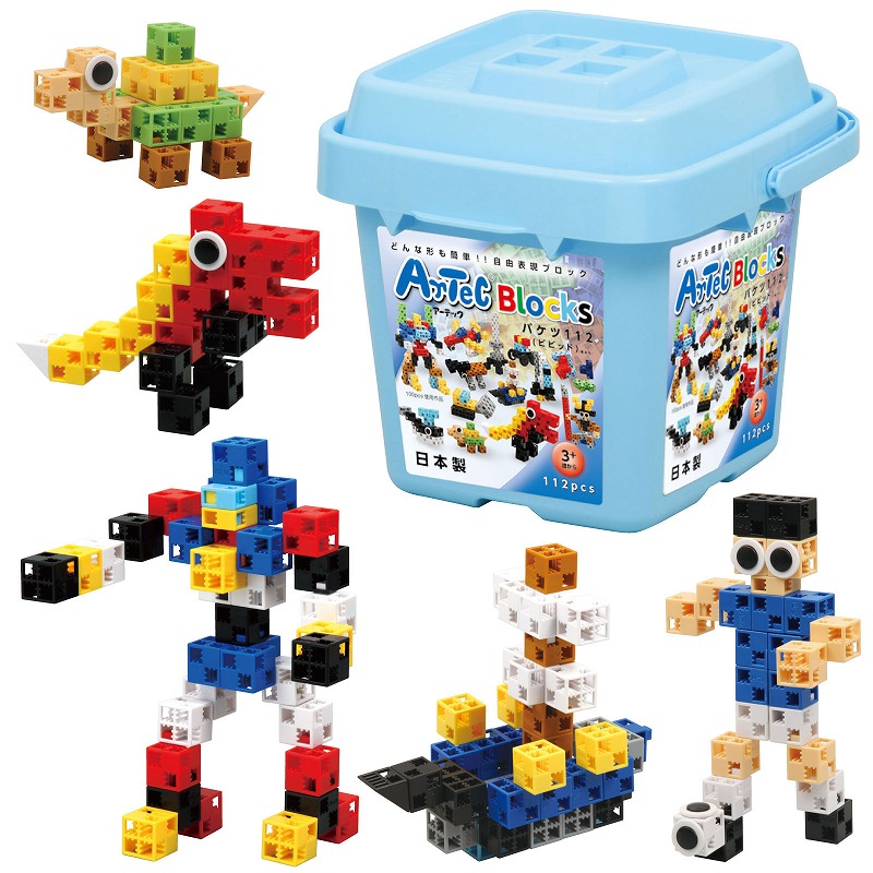 ブロック:ABS、プラバケツ:PP、作例集:紙