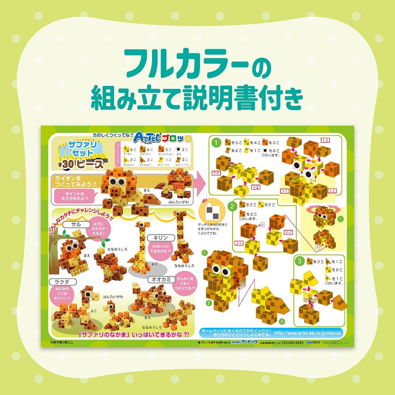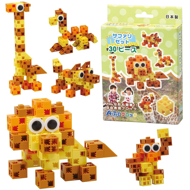 30pcs、紙箱、遊び方説明書付●基本四角 茶×8、黄×8、オレンジ×5●三角 茶×2、黄×2●ハーフA 茶×2、黄×1●丸×2