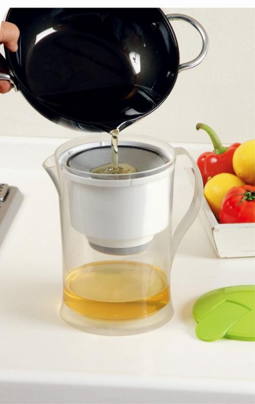 ポット本体/ポリメチルペンテン(TPX)(満水:約2.1L/適正:約0.8L)、ろ過中容器/ポリメチルペンテン(TPX)、フタ/ポリプロピレン、こし網/ステンレス、活性炭/木質系活性炭