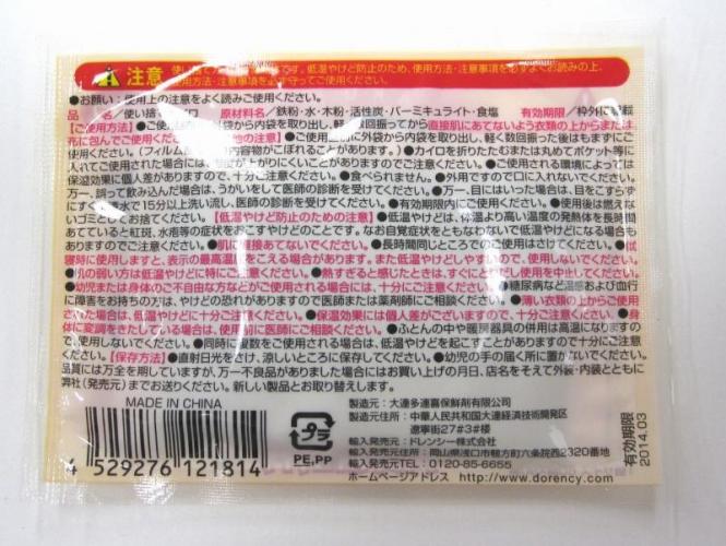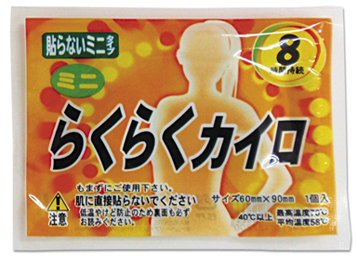 使い捨てカイロは発熱体です。低温やけど防止のため使用方法・注意事項を必ず良くお読みのうえ、使用方法・注意事項を必ず守ってご使用ください