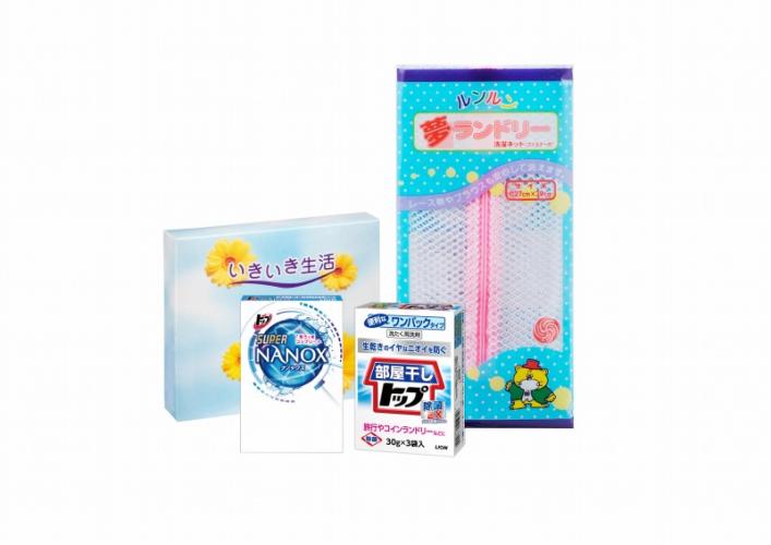 ライオン液体洗剤ナノックス16g×2包×1、ライオン部屋干しトップ30g×3包×1、洗濯ネット(角型小)×1