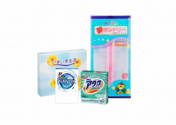 ライオン液体洗剤ナノックス16g×2包×1、花王アタック24g×3包×1、洗濯ネット(角型小)×1