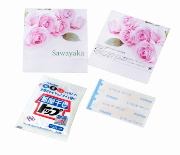 粉末洗剤と傷口にやさしい滅菌済絆創膏をセットしました。
