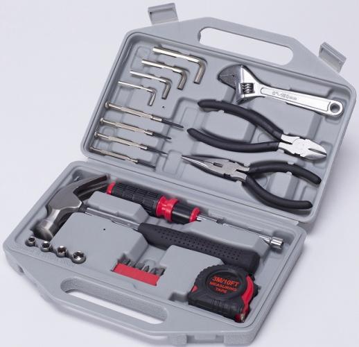 ビットドライバー、エクステンションバー、ソケット×4、ビット×5、ビットアダプター、精密ドライバー×4、六角レンチ×4、ハンマー、メジャー(3mストッパ付)、ラジオペンチ、ニッパー、モンキーレンチ
