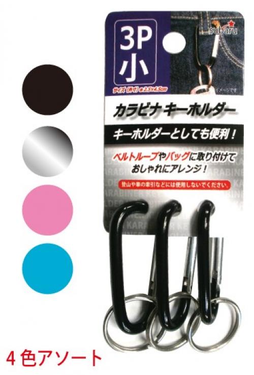 カラビナ キーホルダ(小3P) 4色アソート ※個人宅配送不可