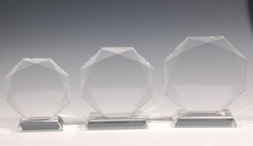 クリスタル製の盾をまとめたカテゴリ。各種記念品や表彰などの記念品向けにレーザー刻印やサンドブラスト加工に対応しています。