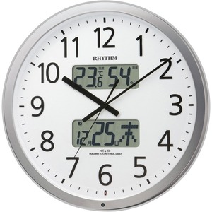 ●電波掛時計 電波OFF機能 電波サーチ機能 電池交換お知らせ機能 ●プログラムチャイム(1日最大24回)と数取り(毎正時)の切替式 ●ステップ秒針(夜眠る秒針) ●カレンダー付 ●温度表示付 ●湿度表示付 ●ユニバーサルフォント使用 ●石膏ボード対応金具付 ●電池寿命約2年間 ●単2アルカリ乾電池2本 ●商品の配色、表面仕上、重量、操作部品などの仕様は改良のため変更することがありますのでご了承願います。