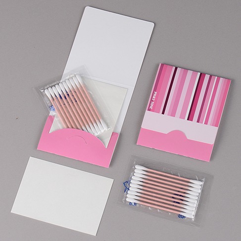 綿棒(ピンク色)10本入、あぶらとり紙(白)10枚入