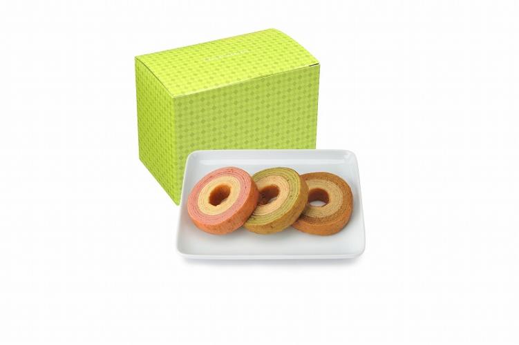 2層バームクーヘン(キャラメル&ミルク)X1、2層バームクーヘン(抹茶&ミルク)X1、2層バームクーヘン(ストロベリー&ミルク)X1