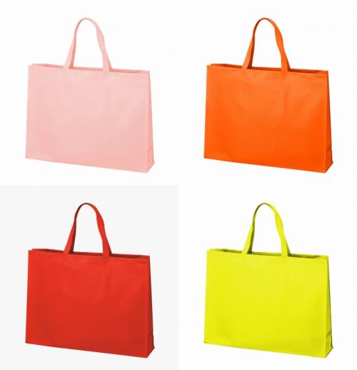 不織布バッグをまとめたカテゴリ。コットンバッグと比べて安価ではありますが軽量で使い勝手がよいと言われています。一般的なA4サイズのバッグであれば100円以下からご用意がありますのでおすすめです。