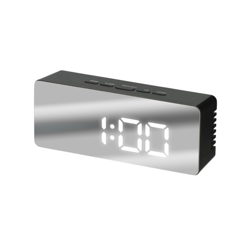 時計表示、アラーム&スヌーズ、温度、ミラー、明るさ2段設定、省エネ機能