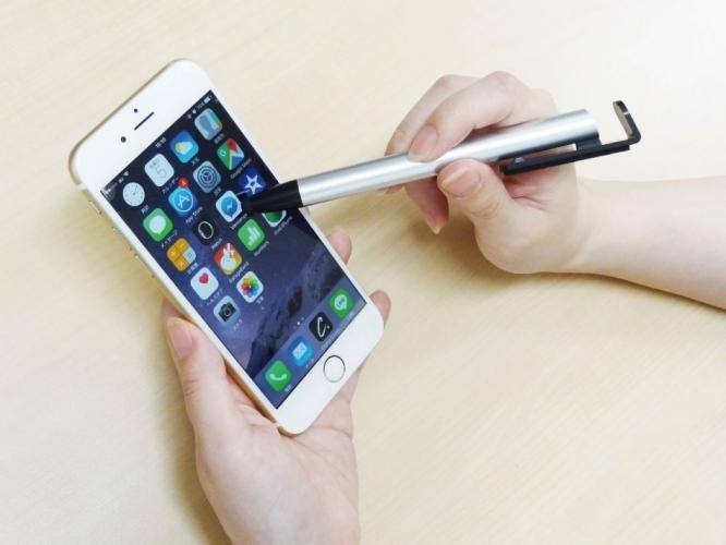 スマホスタンド・ディスプレイクリーナー・タッチペンが付いた便利なボールペンです