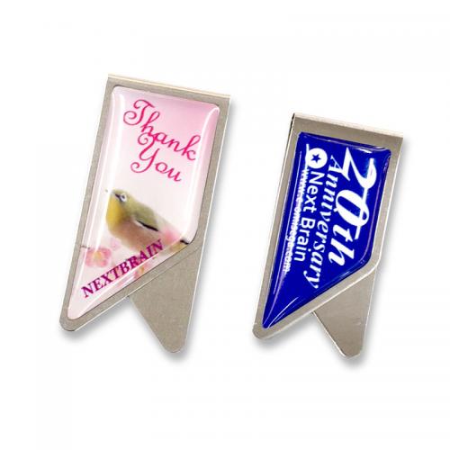 ”ばらまき 配布 宣伝用品” 『オリジナルステンレスクリップ M 樹脂盛ラベルインクジェットフルカラー 3個セット 100個〜』